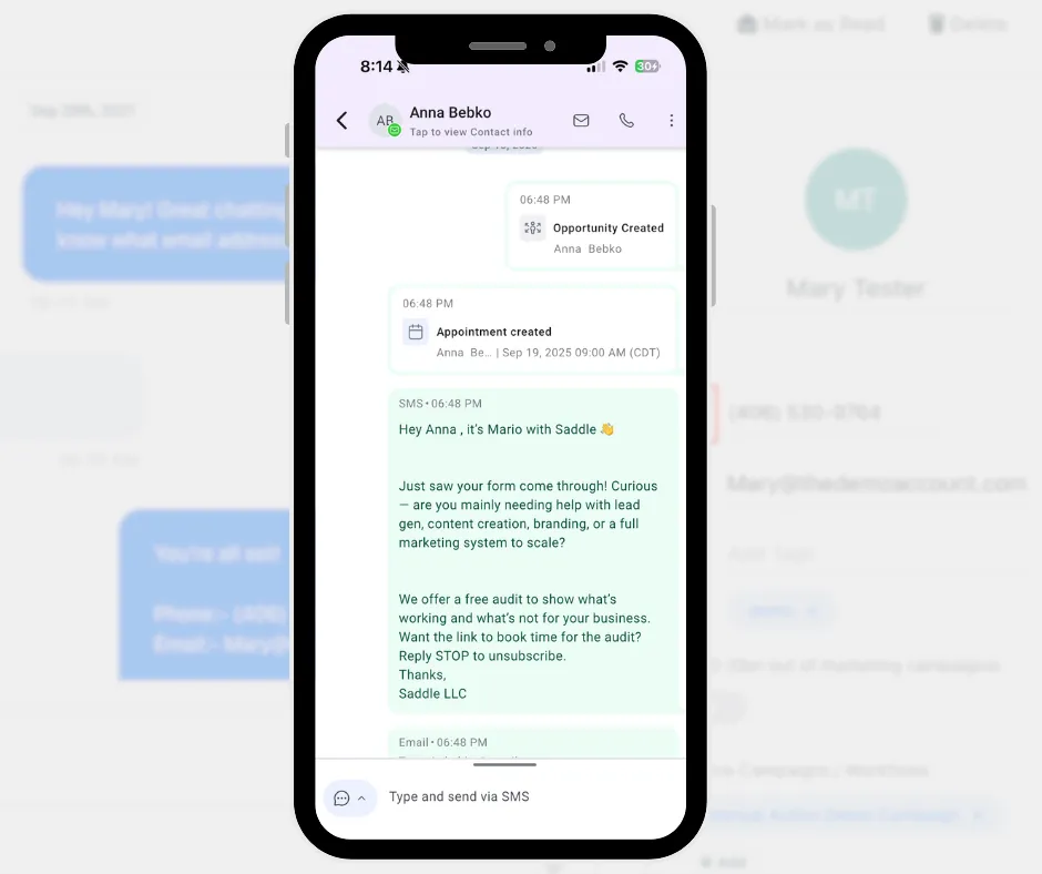 Automated SMS and email followups