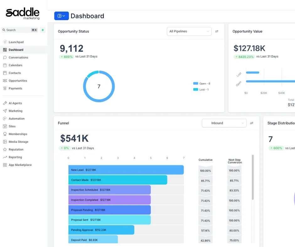 How it works: You pay a base monthly rate, plus a percentage (typically 10%) of sales tied directly to our campaigns or funnel (the Saddle System).